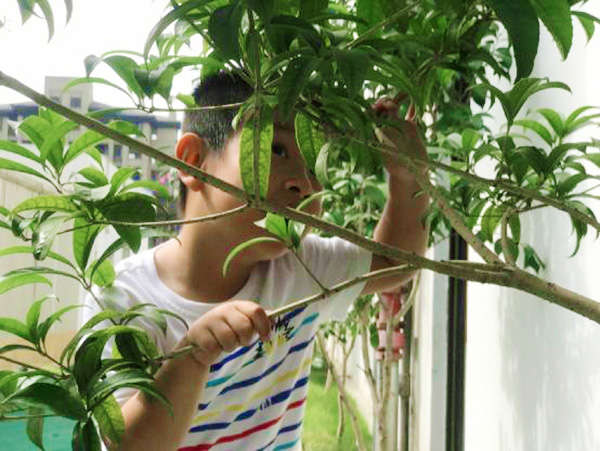 大自然就是孩子們最好的老師,孩子是屬于大自然的,孩子們?cè)谕嫠V懈形蜃匀?。桂花樹清香淡雅,尤其是淡黃或金黃的小花,簇?fù)碓诟髯缘闹︻^,可愛至極,花瓣在風(fēng)中搖擺著頭送出馨香,顯得親切而溫暖。孩子們興奮地觀察著桂花的形狀,聞著桂花的香氣,在這個(gè)時(shí)節(jié)上了一堂有趣的自然課。
