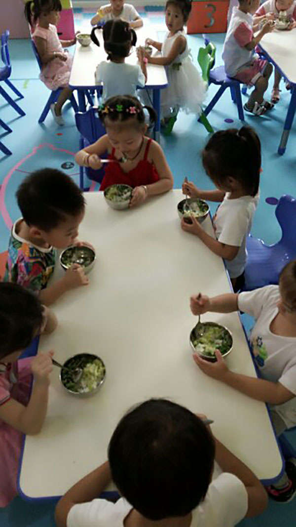 這學(xué)期,中班班有個“吃飯困難戶”,每到吃飯時間就一直坐在那里不動,任憑老師怎么哄、喂都不愿意張開小嘴巴,老師來向我傾訴煩惱。于是我在用餐的時候來到了中二班,看到這個叫郭俊杰的小男孩,正趴在桌上鼓著小嘴巴,把飯碗推到了桌子中間。我走過去,蹲下身子問他:“怎么了?不想吃飯嗎?”他看看我,點點頭。我又問:“這么好吃的雞腿,你不喜歡嗎?要怎樣你才喜歡吃飯呢?告訴老師好嗎?”又過了會兒,他小聲地說:“我想喝水?!蔽亿s緊倒來了水,他“咕咚咕咚”一口氣喝了下去,然后終于張開了嘴巴,一口一口吃起了飯。而此后的每一天,飯前只要給他提供一點水,他都能很高興地把飯吃得干干凈凈。