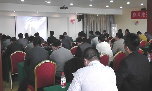 會(huì)議期間,公司市場部總監(jiān)黃樂其講解了“2013年的政策、制度的詮釋”,為業(yè)務(wù)經(jīng)理清晰了今后的工作方向,并宣布了4、5月營銷業(yè)績PK工作安排,PK人員當(dāng)場簽字確認(rèn)。